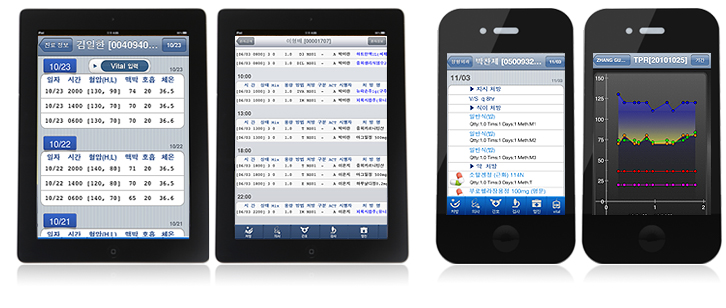 모바일단말기(스마트폰, 모바일기기)를 의료정보시스템 (OCS)에 접목시켜 환자나 의료진이 시간과 장소에